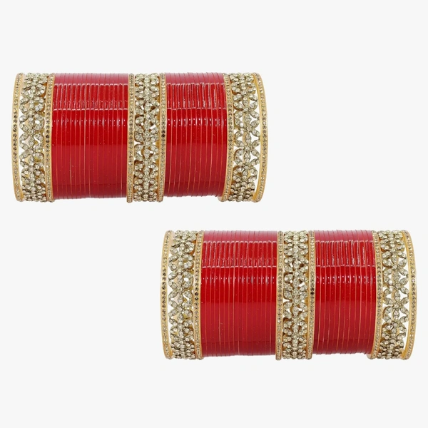 - BRAND: The Brand Lavazza Showcase Premium Red Acrylic Bangles Chuda Set For Bridal Women and Girls with American Diamonds and Zircon Stone Studded. This Chuda Set will Give you a Stylish Look on all Occasions.