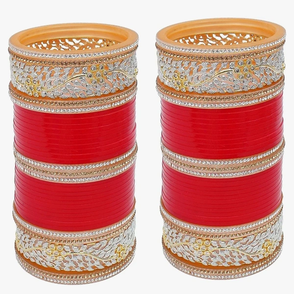 Lucky Jewellery Bridal Bangle Set Red Designer AD (American Diamond) & Golden Stone Chuda Fashion Wedding Chura Punjabi Choora Set (2673-G1C1-1002-R)