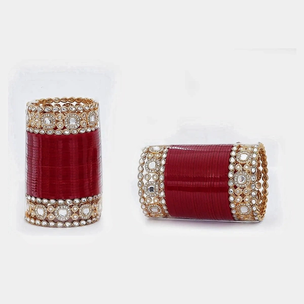 Zoonic Women's Designer Bridal Dulhan Maroon Punjabi Chuda Bangle Set for Ladies